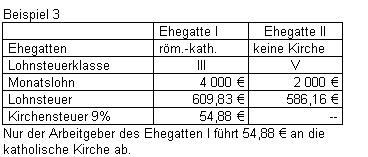 Bei einer konfessionsverschiedenen Ehe gehören die Ehegatten verschiedenen im betreffenden Bundesland steuererhebenden Kirchen an (z.B. ev/rk). Bei gemeinsamer Veranlagung werden sie auch gemeinsam zur Kirchensteuer herangezogen. Die Kirchensteuer wird für jeden Ehegatten berechnet und hälftig auf die Religionsgemeinschaften aufgeteilt und an sie abgeführt. In Bayern, Bremen und Niedersachsen wird von diesem Halbteilungsgrundsatz abgewichen, indem die volle Kirchensteuer des Steuerpflichtigen für die Religionsgemeinschaft einbehalten wird, der er angehört. Die Ehegatten sind Gesamtschuldner der Kirchensteuer.