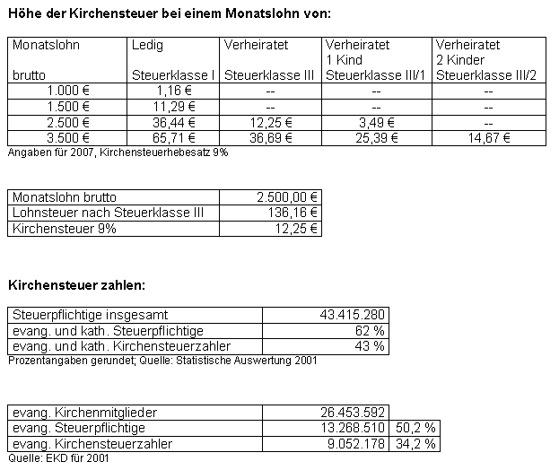 Wieviele Steuerpflichtige bzw. Kirchenmitglieder zahlen Kirchensteuer