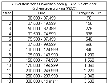 d.) ein besonderes Kirchgeld nach folgender festgelegter Tabelle: