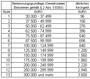Übersicht 2012 Besonderes Kirchgeld in glaubensverschiedener Ehe